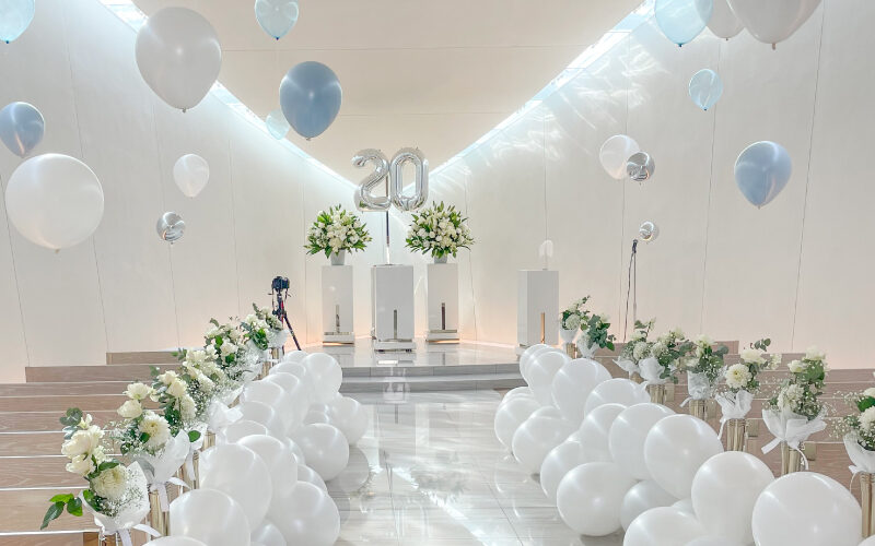 バルーンと空間演出で彩りを添えます。